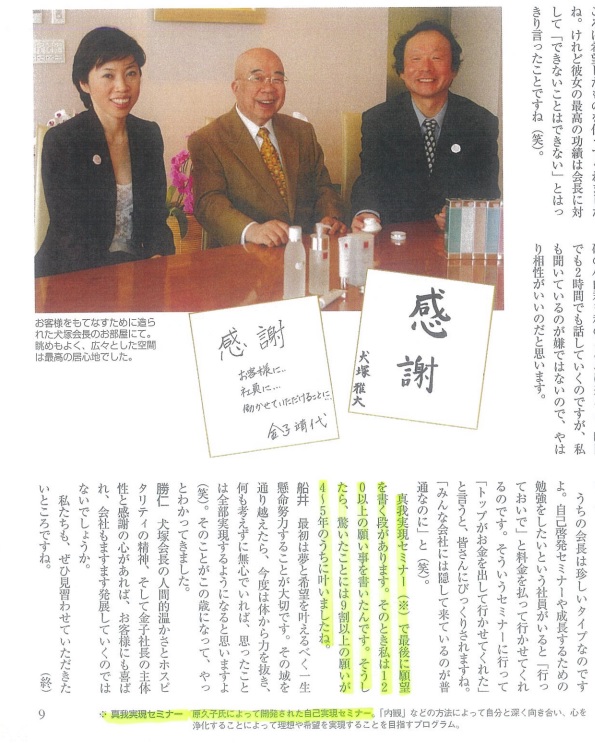 金子社長 「真我実現セミナーで、最後に願望を書く段があります。そのとき私は120以上の願い事を書いたんです。